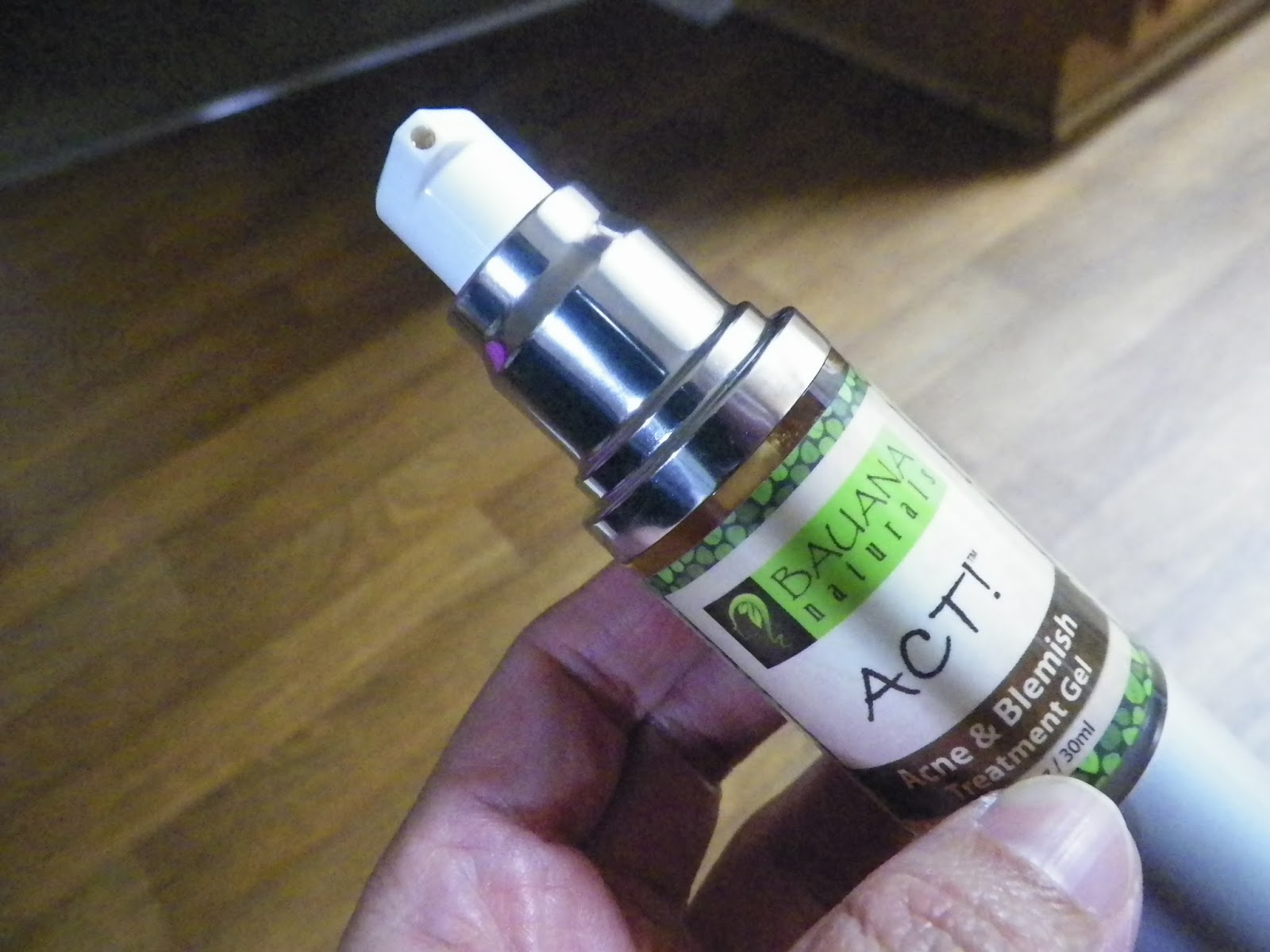 The ACT! Acne Spot Treatment gel arrived in a plastic bottle with a built-in pump.The directions and ingredients were listen on the label. It is made of 98% Natural & 72% Organic ingredients plus 2% Salicylic Acid.